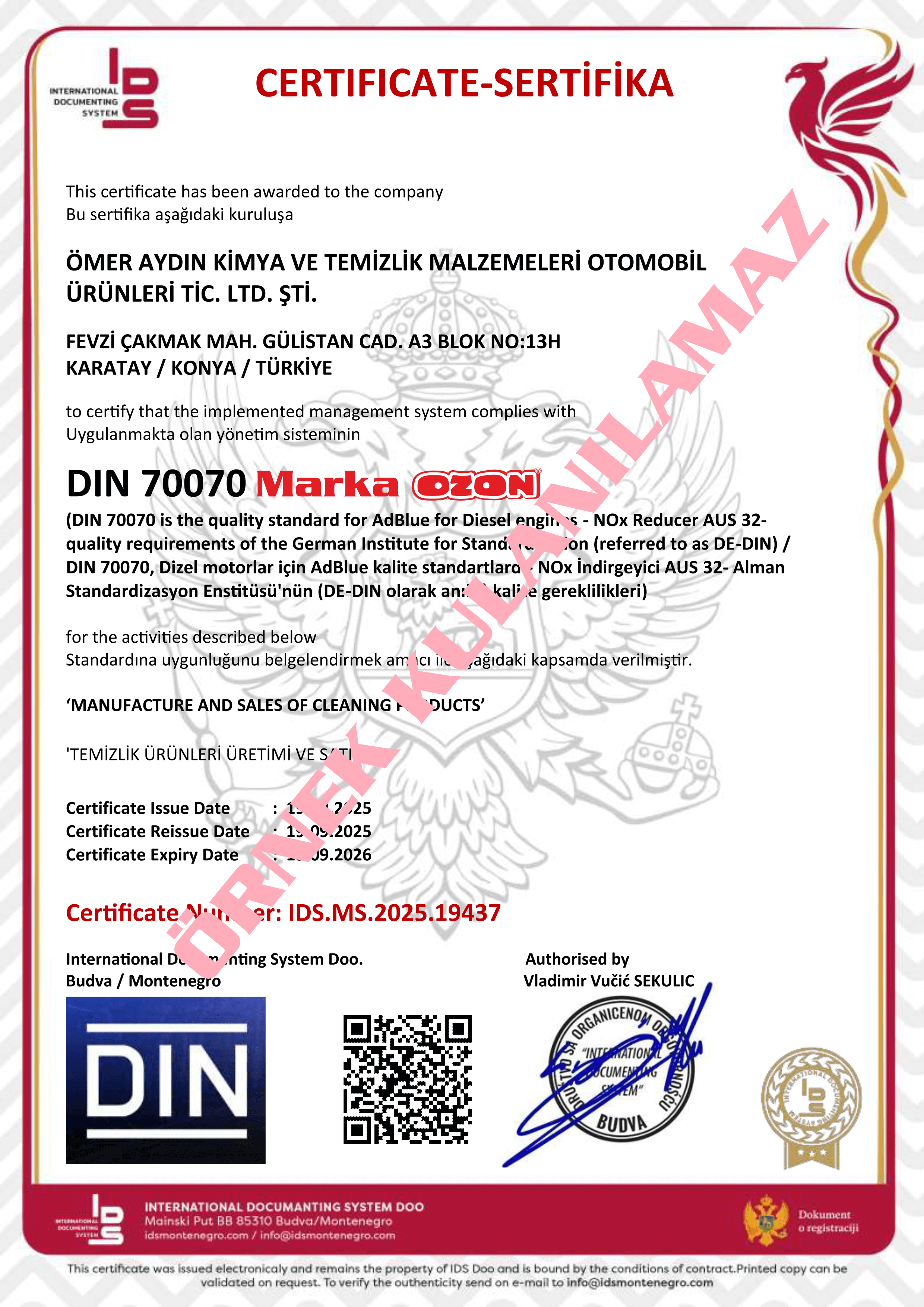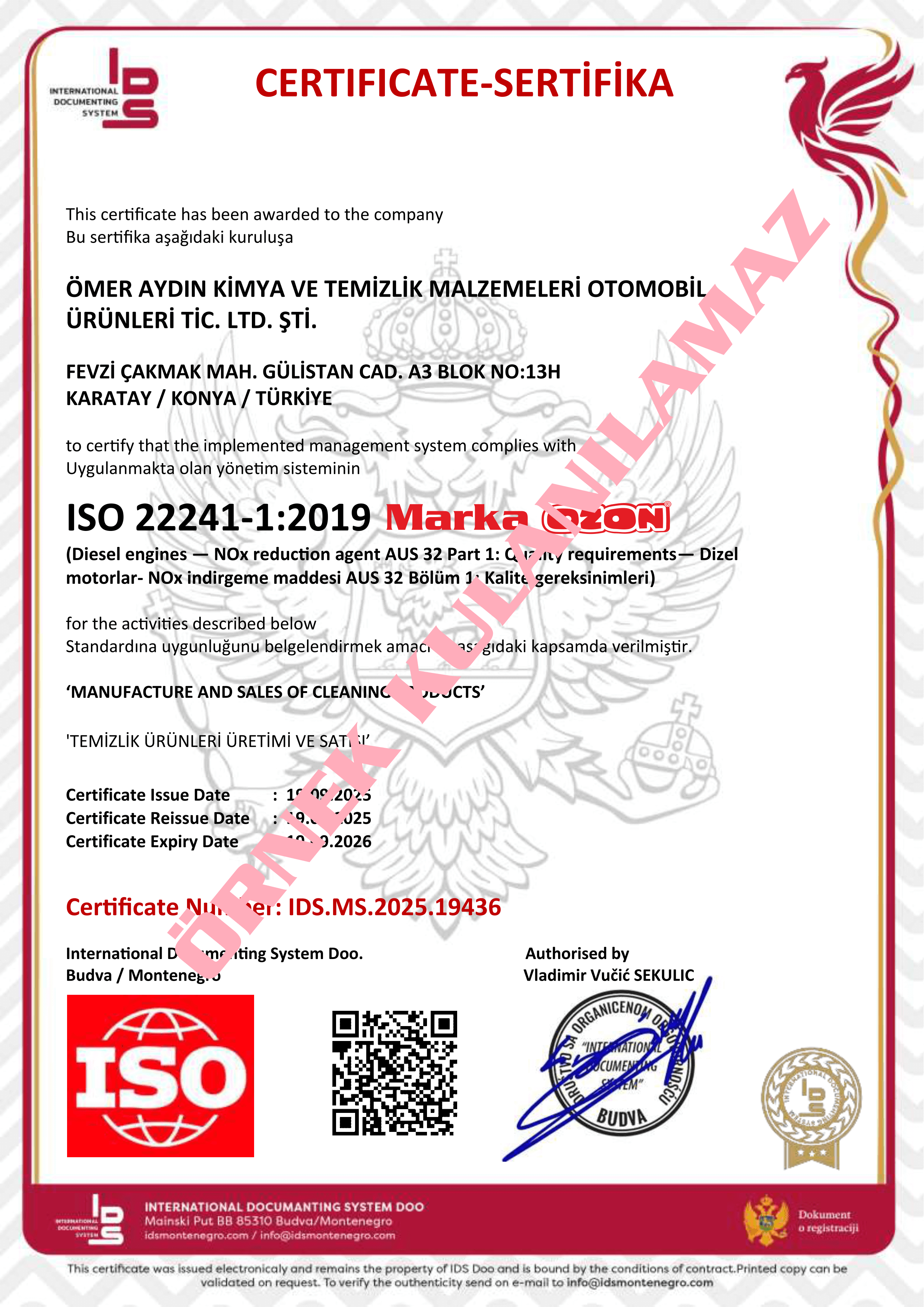Vda Adblue 22241-12019 Sertifakası