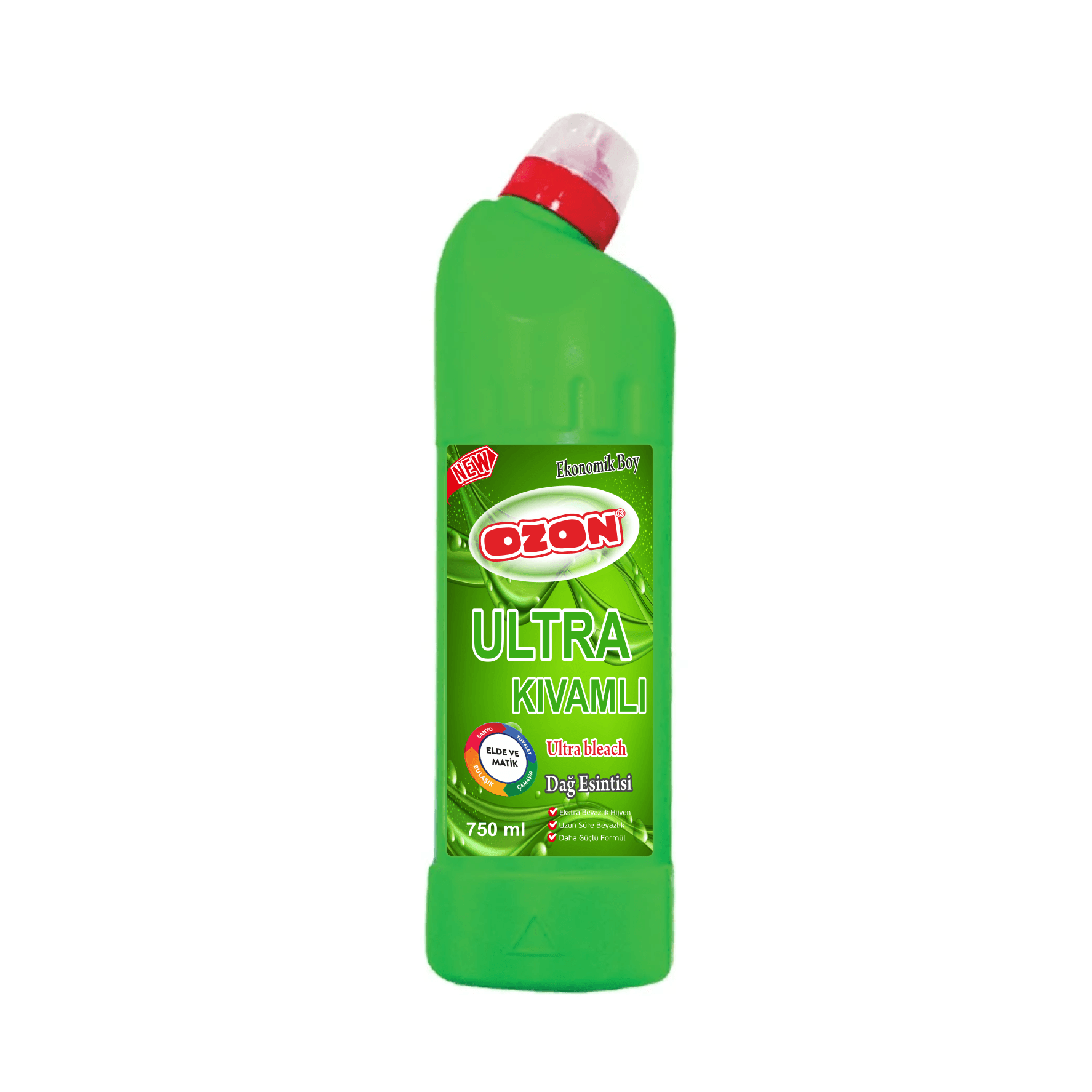Ozon Ultra Kıvamlı Çamaşır Suyu, Beyaz çamaşırların ağartılmasında ve zorlu lekelerin çıkartılmasında etkilidir. Otomatik ve manuel bulaşık yıkamalarında tabak ve bardaklardaki lekelerin çıkartılmasında etkilidir. Dezenfekte etkisi ile hijyenik bir ortam sağlar.